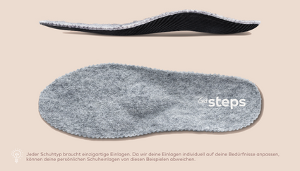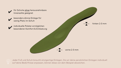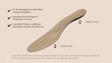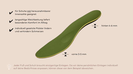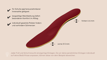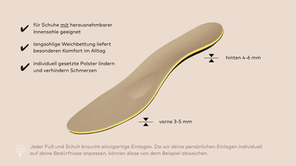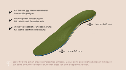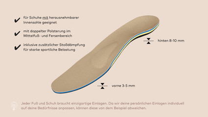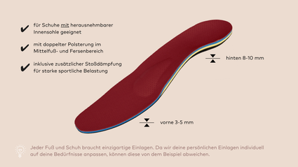 Wichtig: Maßgefertigte Einlagen werden nicht nur an deine Füße, sondern auch den Schuhtyp angepasst, für den du die Einlagen nutzen möchtest.
