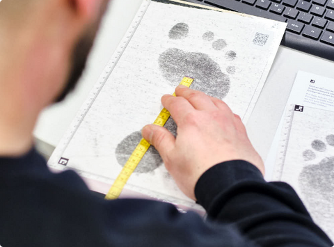Zuhause machst du ganz einfach deinen Fußabdruck, füllst den Fragebogen aus und schickst uns beides per Post zurück.